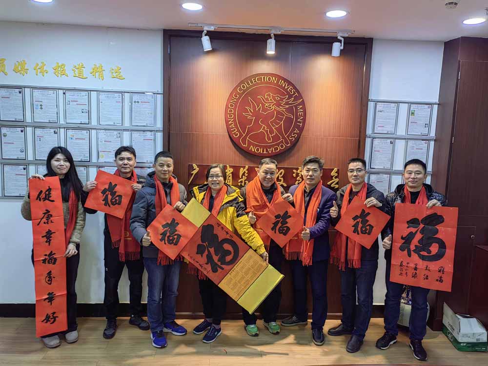 为迎接新春佳节的到来,进一步丰富协会会员精神文化生活、弘扬中华优秀传统文化、营造温馨祥和的节日气氛,2024年1月24日下午,广东省集藏投资协会在会议室开展一年一度的 “挥毫送福迎新春”活动。